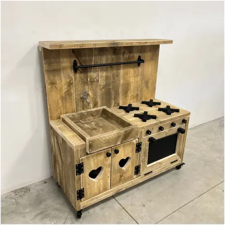 Het steigerhouten Speelkeukentje 3 is een solide en duurzaam speelmeubel, ontworpen voor zowel binnen als buiten gebruik. Gemaakt van echt steigerhout, is dit keukentje bestand tegen intensief spelen en dagelijks gebruik. Dankzij het robuuste ontwerp is het geschikt voor jonge kinderen die graag ontdekken, koken en spelen.