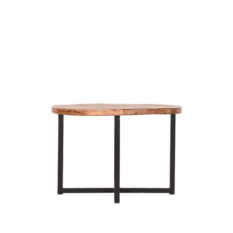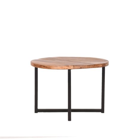 Bijzettafel Dex heeft een rond mango houten blad met een beschermende coating. Het blad in de kleur rough is voorzien van de mooiste natuurlijke kleurnuances en de fraaiste nerven. Het kruisvormige, grof afgewerkte metalen frame in de kleur zwart geeft de tafel een stoer, krachtig en industrieel karakter met een ludiek effect.