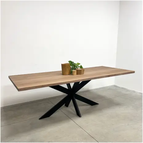 Het onderstel van deze eettafel bestaat uit een zwarte matrix poot. Deze poot zorgt niet alleen voor een stoer accent, maar biedt ook veel stabiliteit en voldoende beenruimte rondom de tafel.