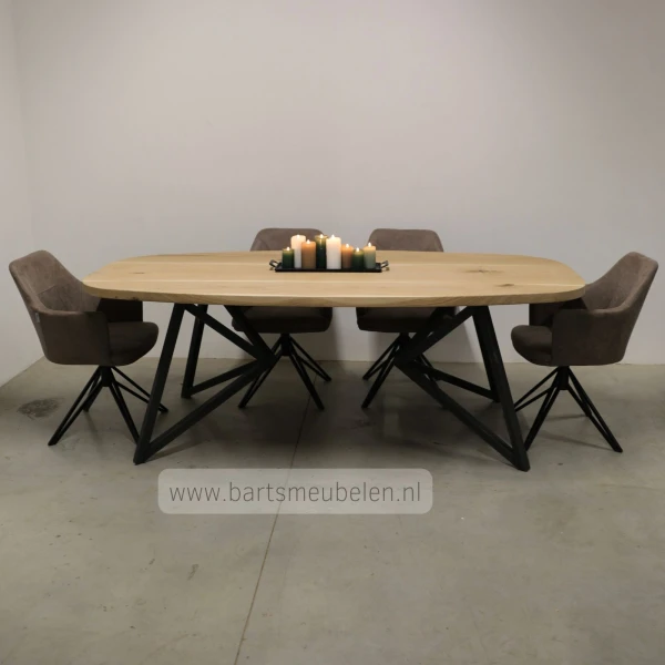 Eiken tafel ovaal Caty (40) met stalen onderstel