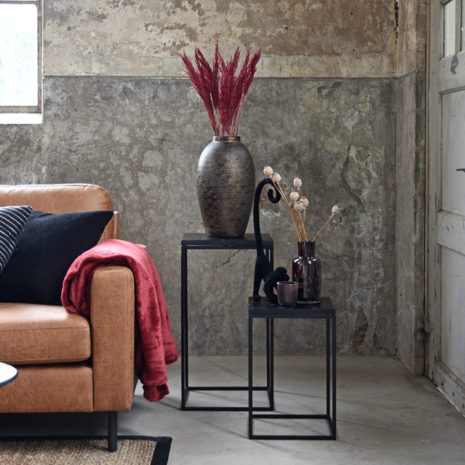 Set plantenzuilen Vintage bestaat uit twee zuilen. De grootste zuil heeft een afmeting van 35x35x65 cm en de kleinere is 30x30x45 cm. Zuilen Vintage hebben een vierkante top gemaakt van duurzaam zwart mangohout met een prachtige unieke draad en verschillende kleurschakeringen in het hout.