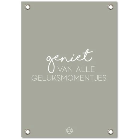 Deze schattige groene tuinposter heeft een prachtige zachte kleur, hierop staat de witte tekst: geniet van alle geluksmomentjes. Een mooiere quote kan je als gezin toch niet ophangen in de tuin.