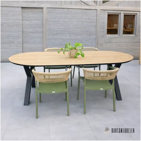 - Tuintafel HPL oak palasanto met trapezium poot