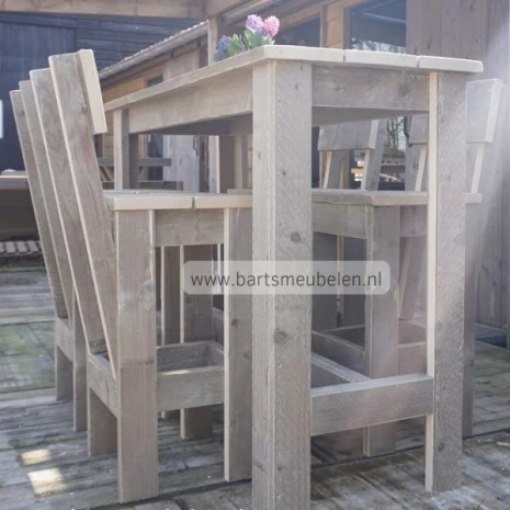 Deze barset wordt gemaakt van steigerhout. Hierbij is er keuze uit diverse soorten steigerhout, nieuw steigerhout, old-look steigerhout = deze is te zien op de foto en gebruikt steigerhout.