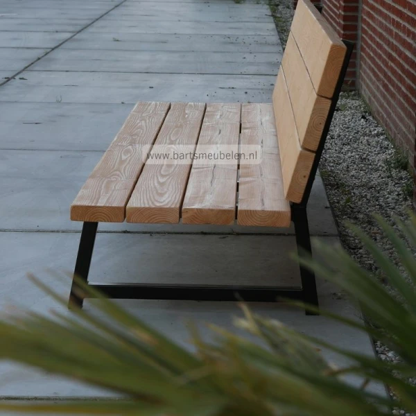 Buitenbank Douglas met stalen frame is stoer en modern.