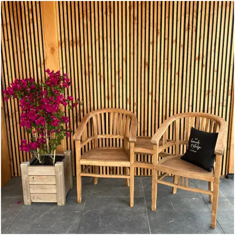 Teak hardhout staat bekend om zijn lange levensduur en weerbestendige eigenschappen. Dit maakt de bank geschikt voor buitengebruik, waar hij jarenlang mooi en stevig blijft. Door het tijdloze ontwerp past de loveseat in zowel moderne als klassieke tuinen.