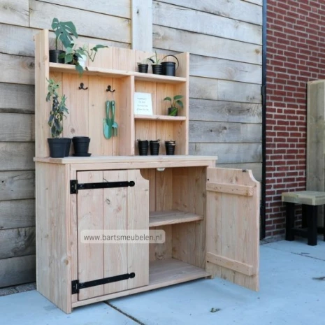 Onze douglas tuinkast is geliefd voor de tuin. Een heerlijke buitenkast voor het opbergen van spulletjes. Maar tegelijkertijd ook ontzettends sfeervol door de ruimte bovenop. Gebruik hem als aanvulling voor jouw buitenkeuken of als oppot tafel met opbergruimte.