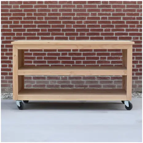 Deze werktafel voor in de tuin van douglashout is perfect voor vele doeleinden. Gebruik hem naast de kamado bbq om extra werkruimte te creรซren, als oppottafel of voor decoratie. Door de wielen is hij gemakkelijk te verrijden en kun je hem voor vele doeleinden inzetten. Een onmisbaar item voor de tuin als je het ons vraagt.
