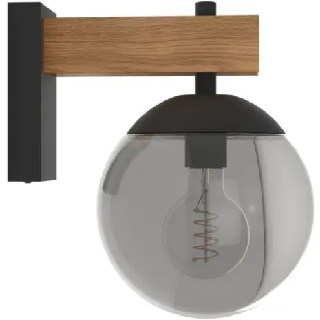 De BUFALATA wandlamp combineert strak zwart met een warme houtlook. Hierdoor past deze lamp perfect bij moderne tuinen en buitenkeukens. De rookglazen bol zorgt voor een sfeervol lichtbeeld. Dankzij de spatwaterdichte afwerking is de lamp geschikt voor buitengebruik.